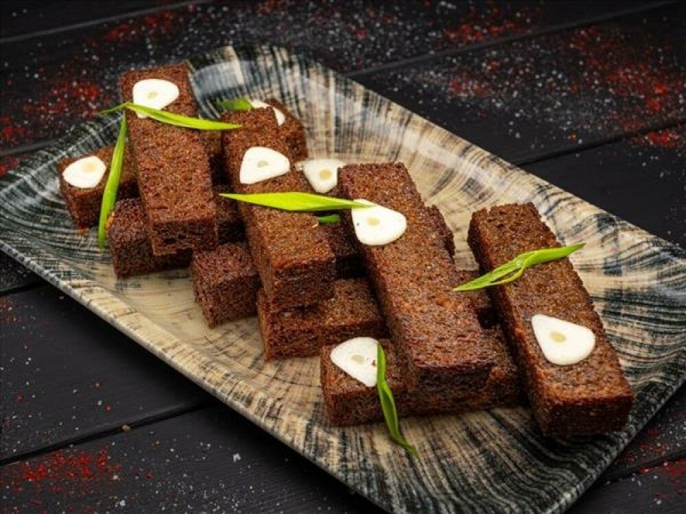 Хлеб бородинский, чеснок, лук зеленый, соус тартар
