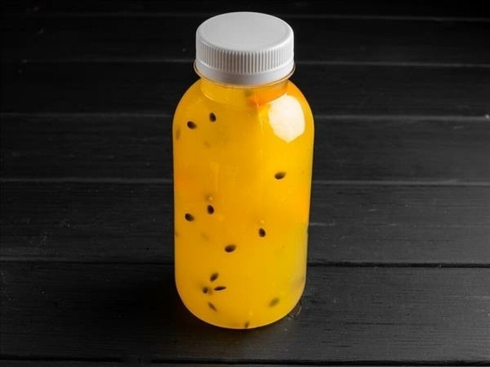 Состав: вода газированная, манго свежее, маракуйя свежая, сироп манго-маракуйя. Собственного приготовления.